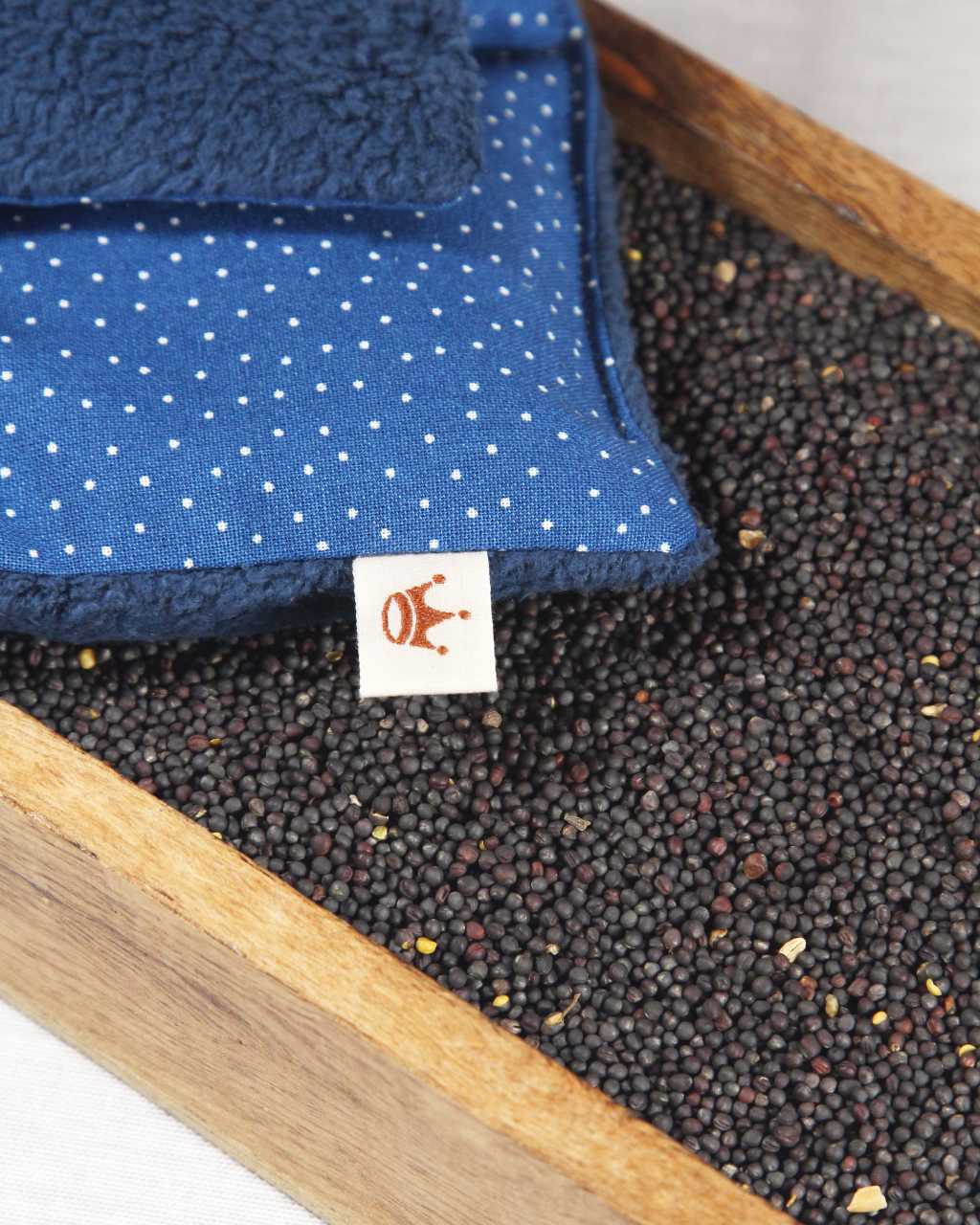 Das dreigeteilte Wärmekissen im charmanten Pünktchen-Design in blau bringt natürliche Wärme in den Alltag. Kuscheliger Baumwollfleece auf der Rückseite und eine Füllung aus feinem Rapssamen sorgen für langanhaltende Wärme. Perfekt für kleine Kinderhände.